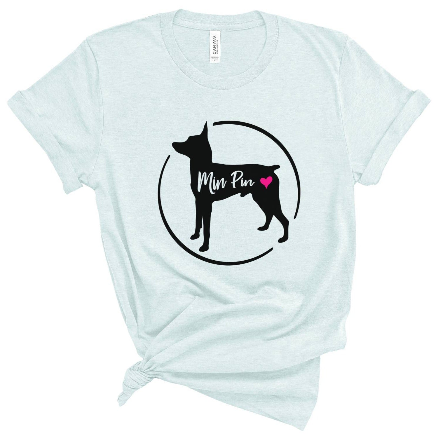 A great way to show the world that your fur-baby is a Min Pin. The perfect shirt for a new miniature pincher mom or mom-to-be, or min pin breeder.